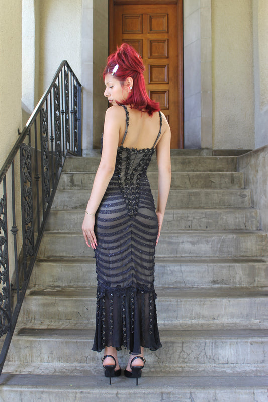 Gothic beaded silk dress