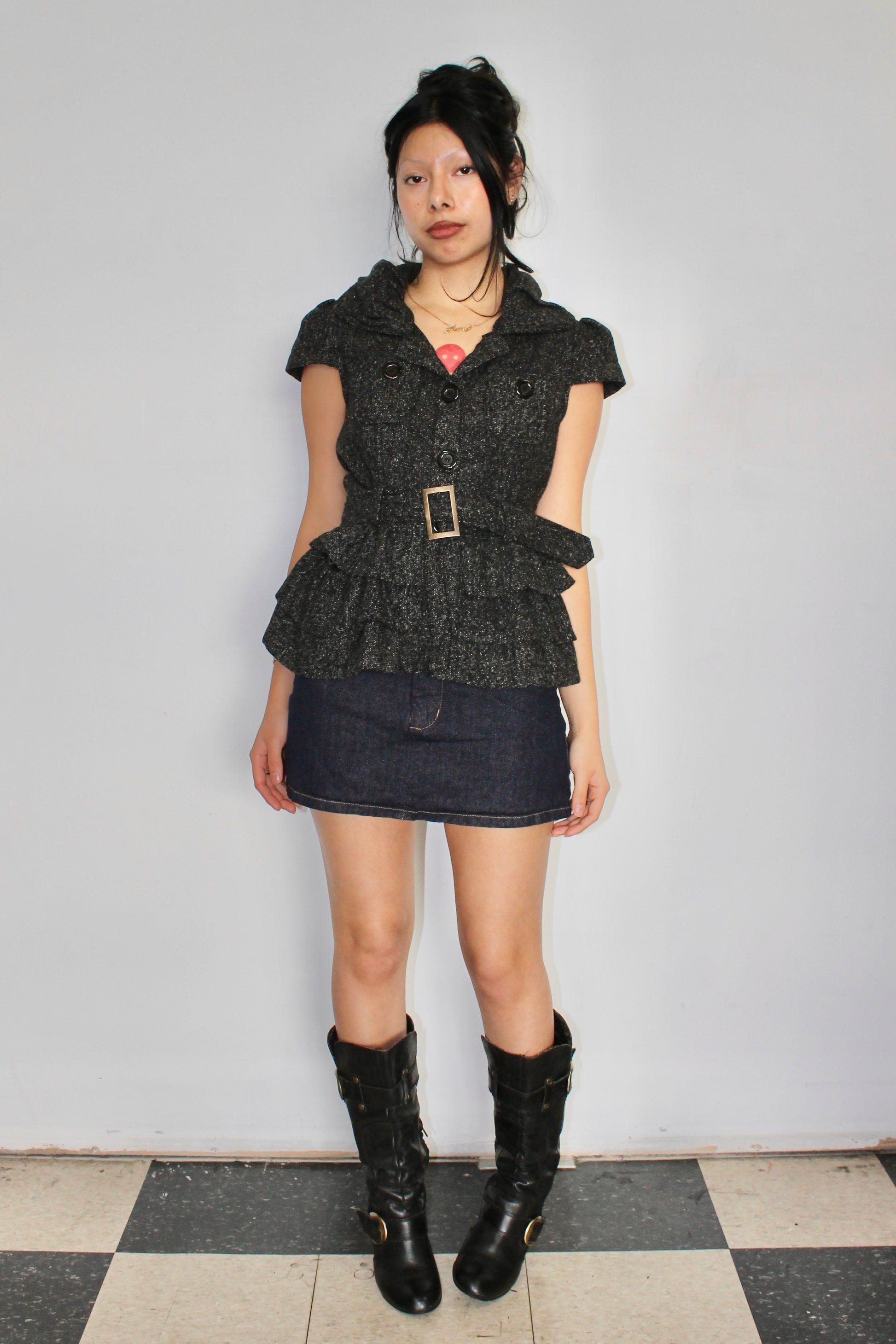 Vintage buckled tweed top
