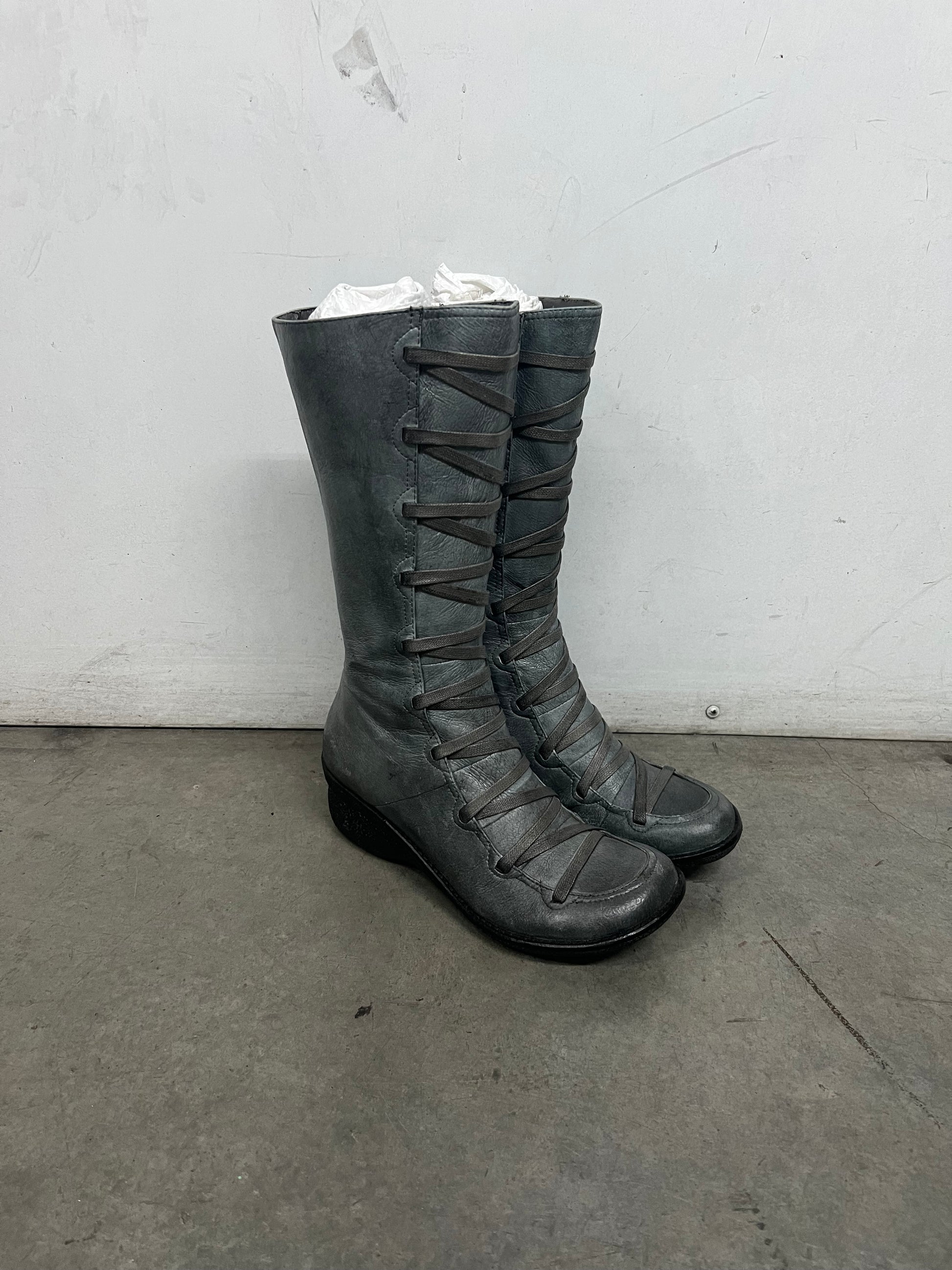 Insane vintage laceup moto boots with the sickest grey fade on them