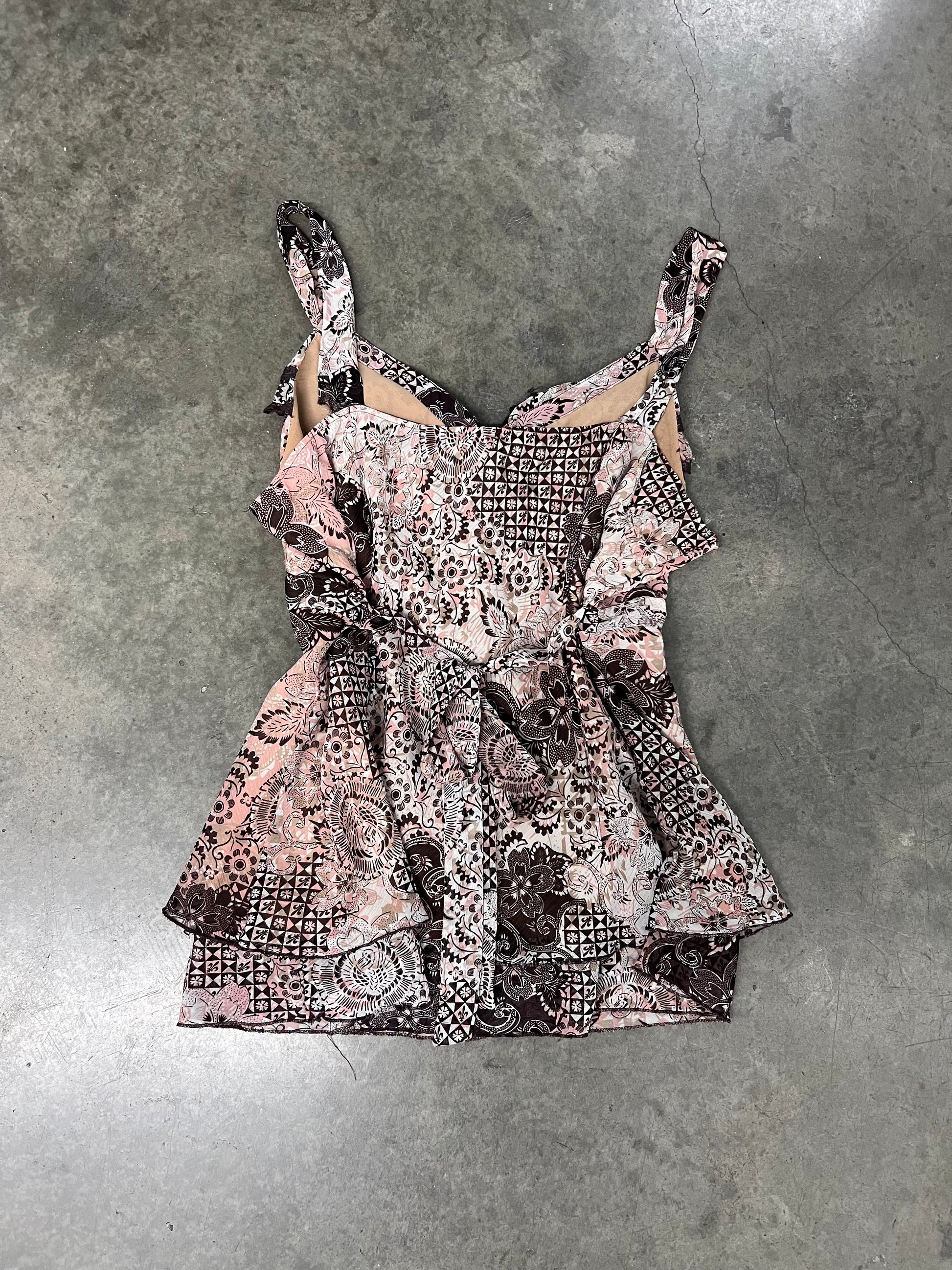 Vintage patterned lace fairy top with tie up back